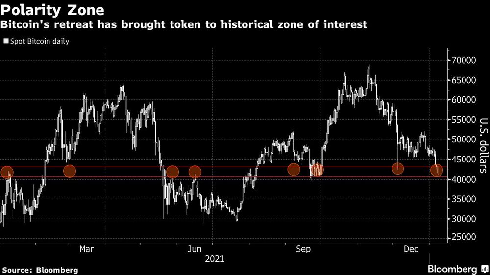 La falta de interés y la demanda debido a la temporada navideña, las ventas basadas en impuestos y la preocupación en los mercados sobre las posibles acciones de la Fed están dando como resultado una debilidad en el cambio de año, dijo Vijay Ayyar, vicepresidente de desarrollo corporativo e internacional en el intercambio de cifrado Luno en Singapur. Él espera que se enfoquen niveles entre US$38.000 y US$40.000.