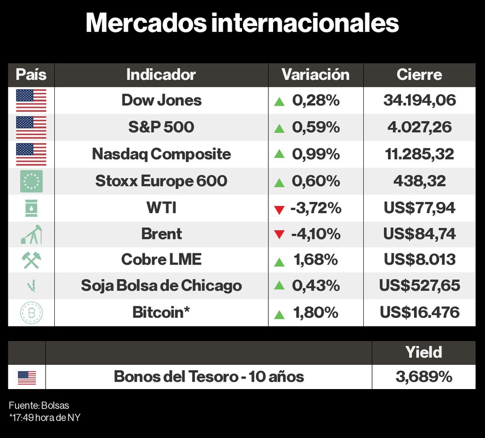 Por su parte, el Ibovespa de Brasil (IBOV) tuvo un leve revés de 0,18% en la jornada, desligándose de los resultados que tuvo Wall Street y a la expectativa de los posibles impactos de la gestión fiscal que hará el gobierno entrante de Lula da Silva.