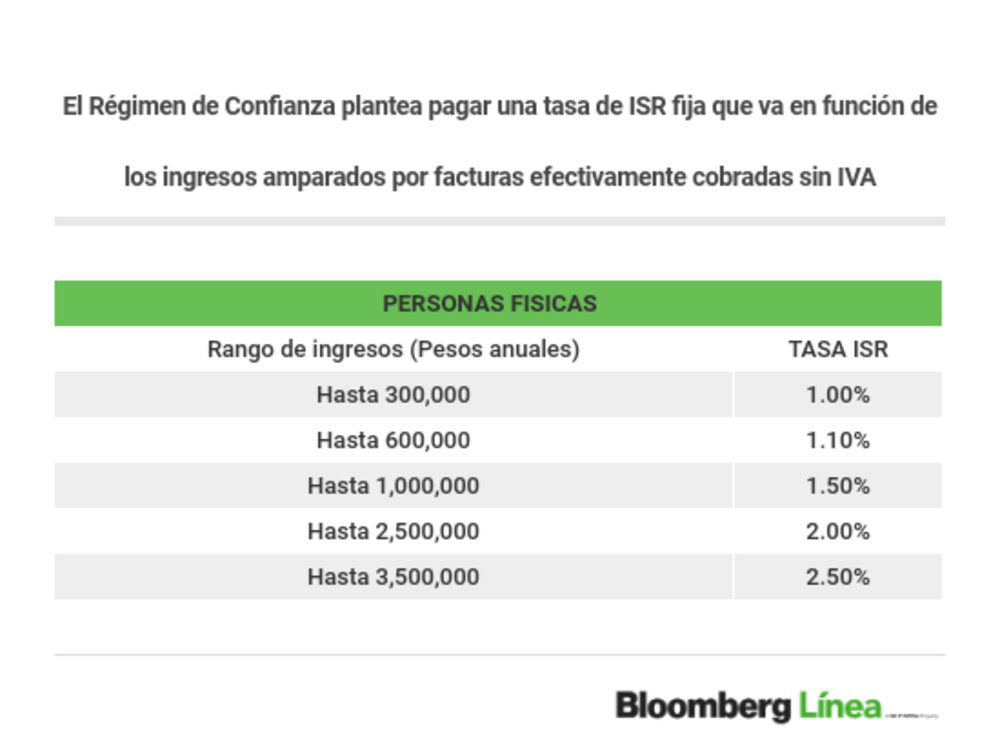 Por ejemplo, la tributación anual de un contribuyente con un ingreso anual de hasta 300 mil pesos, pagaría un impuesto de 3,000 pesos al año al aplicarle una tasa de ISR de 1%.