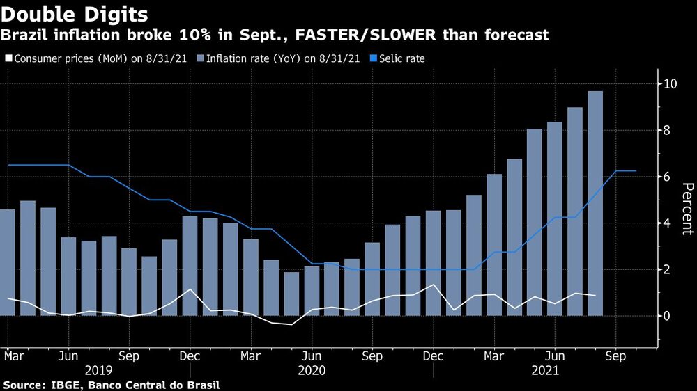 Bloomberg — La inflación anual de Brasil superó el 10% por primera vez en más de cinco años, a medida que continúa la recuperación de la demanda de los consumidores mientras la economía se enfrenta al aumento de los precios de la electricidad y las materias primas.