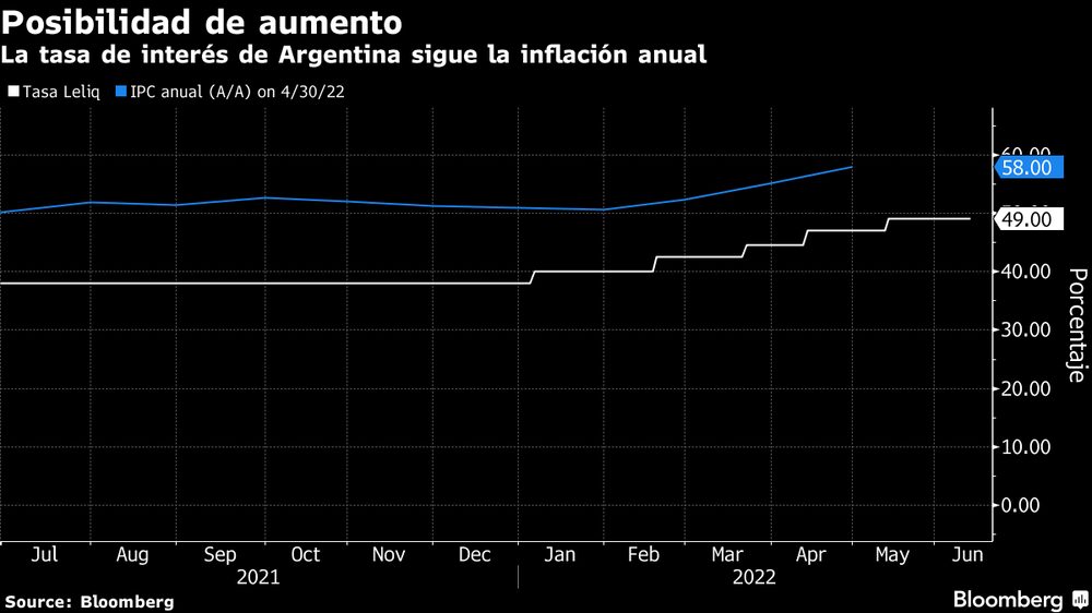 Es muy probable que el banco decida a favor del aumento, aseguró el funcionario con conocimiento directo del asunto, y que pidió no ser identificado ya que las discusiones son privadas. La decisión marcaría el sexto aumento de tasas este año, con una inflación anual del 60%, frente a una tasa de referencia (Leliq) que se ubica actualmente en 49%.