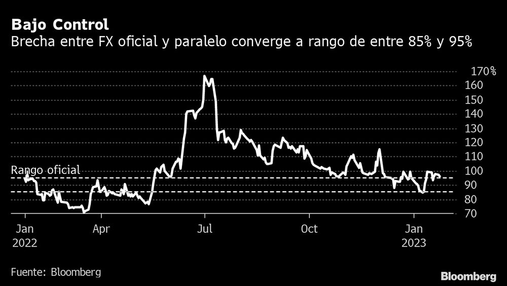 El plan apunta a mantener la brecha cambiaria dentro de una “velocidad crucero” en torno a un rango de entre 85% y 95%, por debajo de los niveles que tuvo en la mayor parte del 2022. Los funcionarios que diseñan el plan económico de Sergio Massa perciben que un nivel de brecha superior a este rango es nocivo para la economía, porque alimenta las presiones en el mercado cambiario y sobre los precios. Consideran, a la vez, que cuando la brecha del tipo de cambio empieza a reducirse y explorar un nivel cercano al 80%, el mercado puede empezar a interpretar que los tipos de cambio paralelos están atrasados y que gestarán, tarde o temprano, las condiciones para un o sobrereacción.