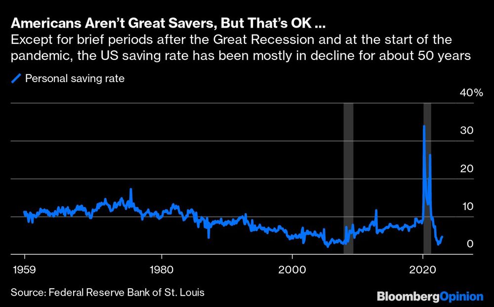 Bloomberg Opinion — La baja tasa de ahorro personal de los estadounidenses (actualmente se sitúa en el 4,7%) puede parecer motivo de preocupación. La buena noticia, sin embargo, es que los estadounidenses pueden contar con que sus empresas ahorren mucho por ellos.