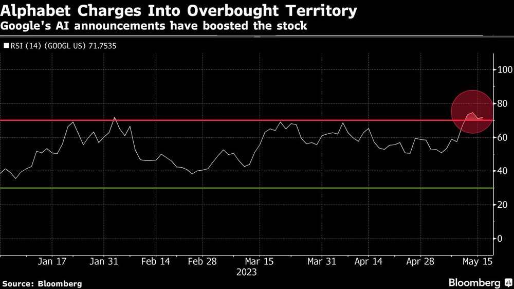 La subida de Alphabet en la última semana ha impulsado su índice de fuerza relativa por encima del nivel de 70 que indica a algunos analistas técnicos que una acción puede haber subido demasiado, demasiado deprisa. Las acciones subieron un 0,4% el martes, aunque siguen en territorio de sobrecompra.