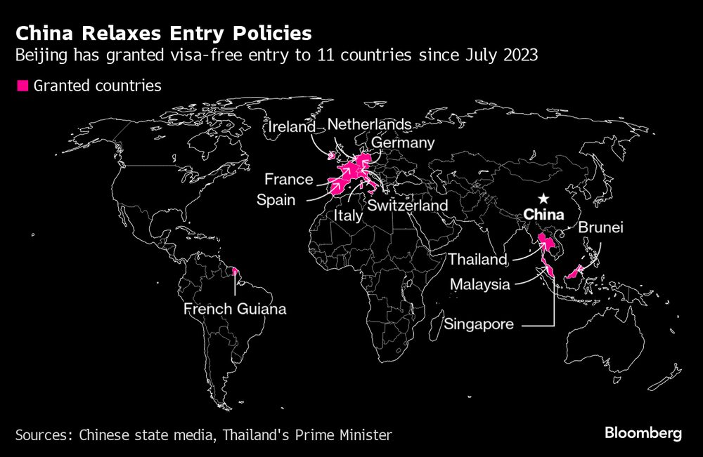 Beijing ha eliminado los requisitos de visa para algunas naciones a medida que la segunda economía más grande del mundo trabaja para promover el turismo y los vínculos comerciales en medio de las presiones internas de la deflación y la demanda reprimida.