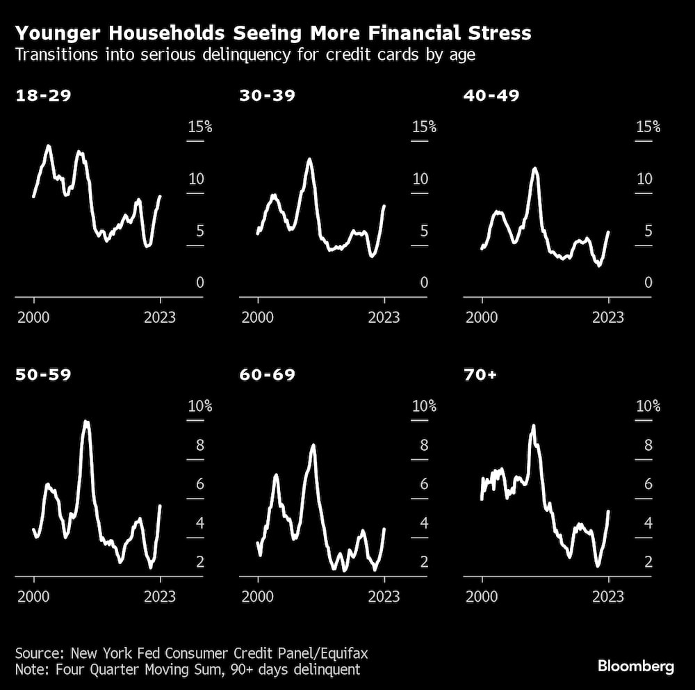 Los hogares estadounidenses asumieron más deuda al final del año pasado, y parte de esos préstamos son cada vez más incobrables, según datos del Banco de la Reserva Federal de Nueva York. Aunque las tasas de morosidad generales de Estados Unidos siguen por debajo de los niveles previos a la pandemia, las tasas de morosidad de las tarjetas de crédito y los préstamos de automóviles son ahora más altas.