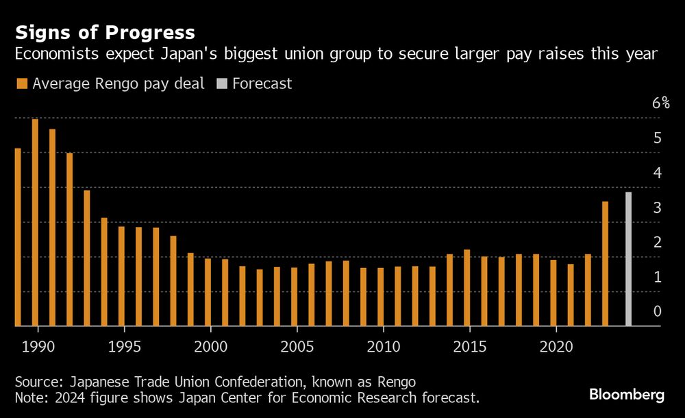 Las negociaciones salariales anuales de Japón han comenzado en serio, atrayendo una mayor atención mientras el Banco de Japón busca evidencia de un ciclo virtuoso de precios y salarios que le permitiría salir del régimen de tasas negativas. Los datos publicados el martes mostraron que el crecimiento salarial se fortaleció menos de lo esperado en diciembre, pero aún mostró signos de suficiente impulso subyacente para mantener al Banco de Japón en camino.
