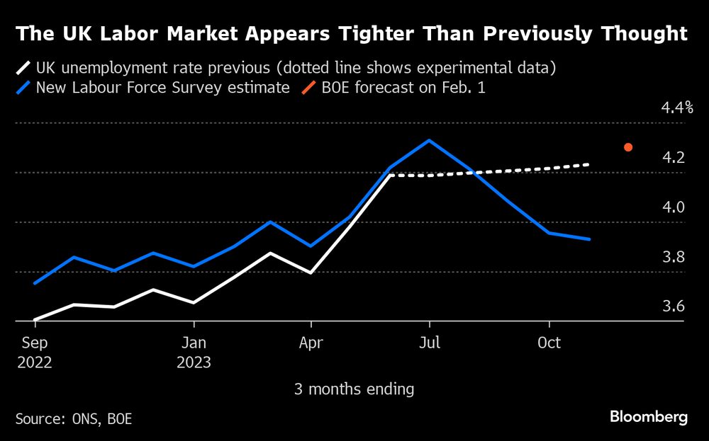 El mercado laboral de Gran Bretaña está más ajustado de lo que se pensaba, reflejando cambios en las estimaciones de población en los datos oficiales que mostraron más jóvenes en edad de trabajar que antes. El desempleo según la nueva medida fue del 3.9% en los tres meses hasta noviembre, muy por debajo del 4.2% estimado utilizando datos anteriores, según la Oficina de Estadísticas Nacionales.