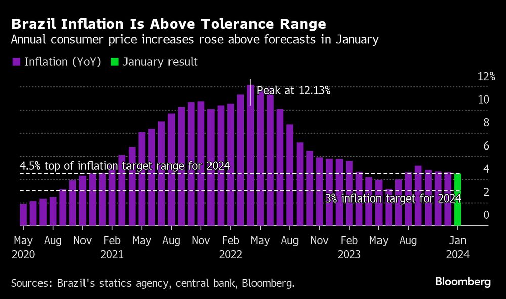 La inflación anual de Brasil se desaceleró menos de lo esperado a principios de año, lo que subraya los desafíos a los que se enfrenta el banco central a medida que reduce los costos de endeudamiento.