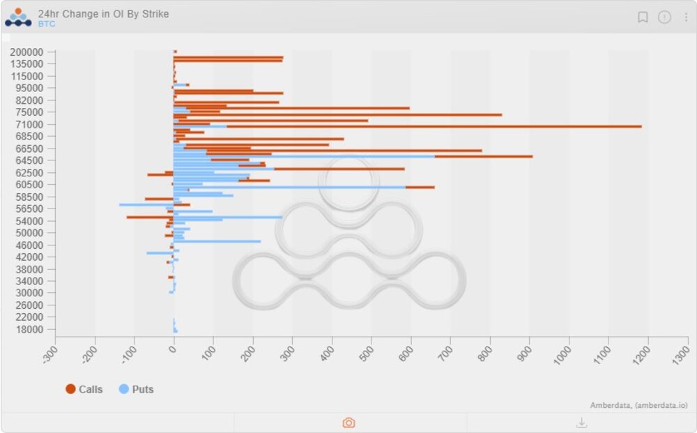 “A finales de la semana pasada, vimos una ralentización en la compra de opciones OTM (fuera de dinero), y algunas cabezas más frías comprando a la baja”, dijo Luke Nolan, investigador asociado de la gestora de criptoactivos CoinShares. “El comienzo de esta semana muestra una reanudación de la actividad alcista, con una gran cantidad de llamadas OTM de vencimiento de marzo agrupadas en 65k, 70k (All time high) y algunas otras agrupaciones en 75k y 80k”.