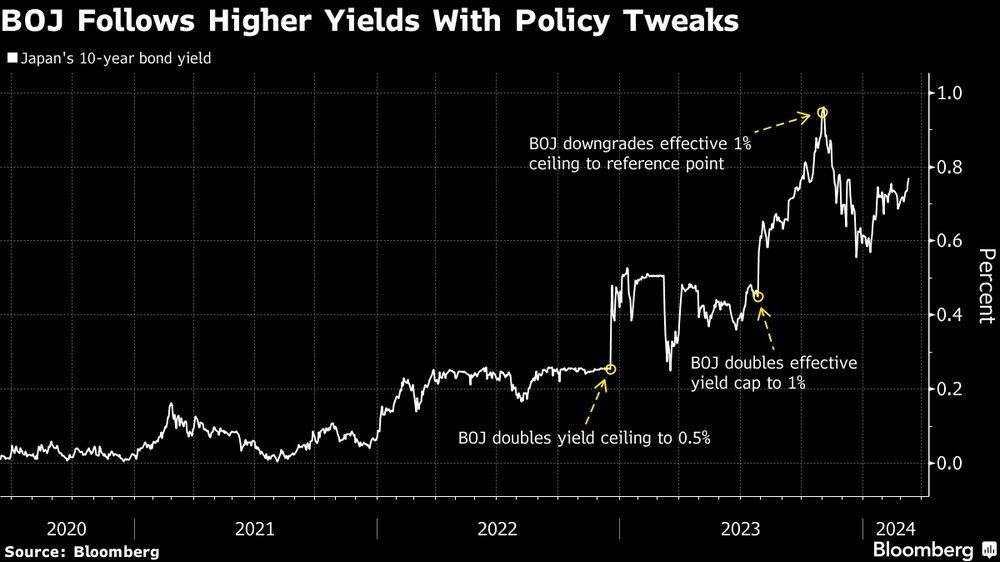 Las perspectivas para la política monetaria definirán los flujos de capital futuros después de que miles de millones de dólares se hayan destinado en el último año. Los swaps overnight-indexed muestran que la tasa de política a corto plazo del BOJ podría subir hasta un 0,25% a fines de 2024 desde menos 0,1%.