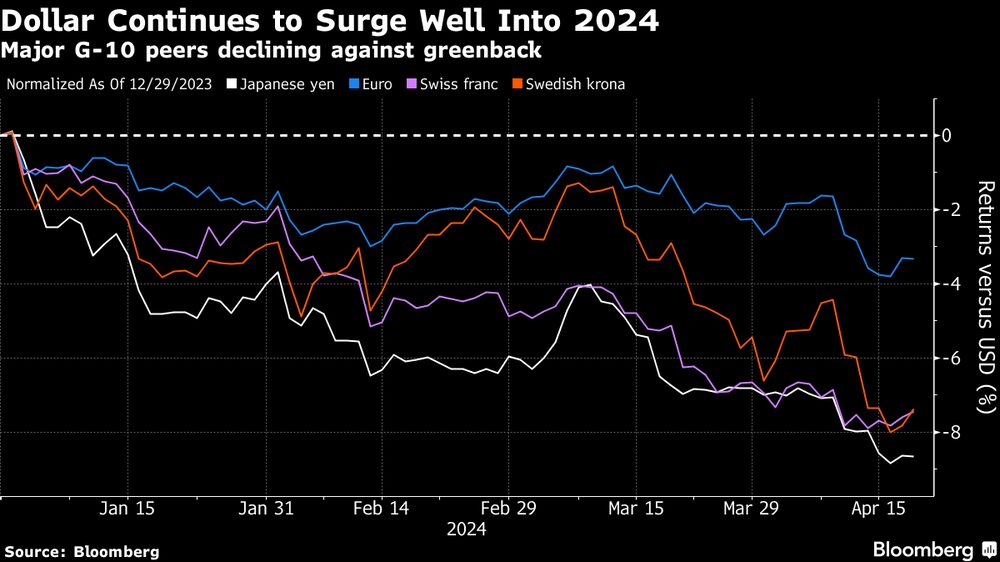 Bloomberg — Los mercados financieros mundiales están enfrentando una fuerza en la que no apostaron para 2024: el dólar fuerte está de vuelta y parece que se quedará.
