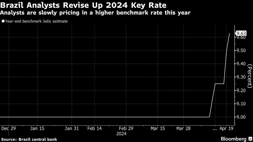 Bloomberg — Los analistas brasileños vuelven a elevar lentamente sus estimaciones para el tipo de interés de referencia a finales de 2024, ya que la magnitud del recorte del coste de endeudamiento previsto para esta semana sigue siendo dudosa.