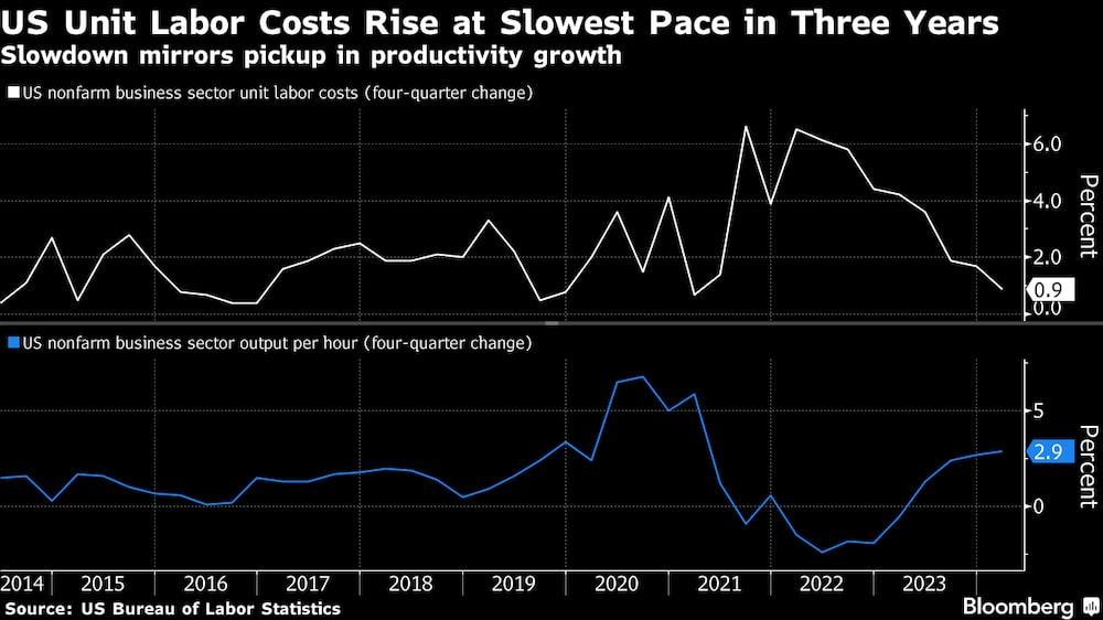 Desde un año antes, los costos laborales unitarios subieron solo un 0,9%, el ritmo más lento en tres años.