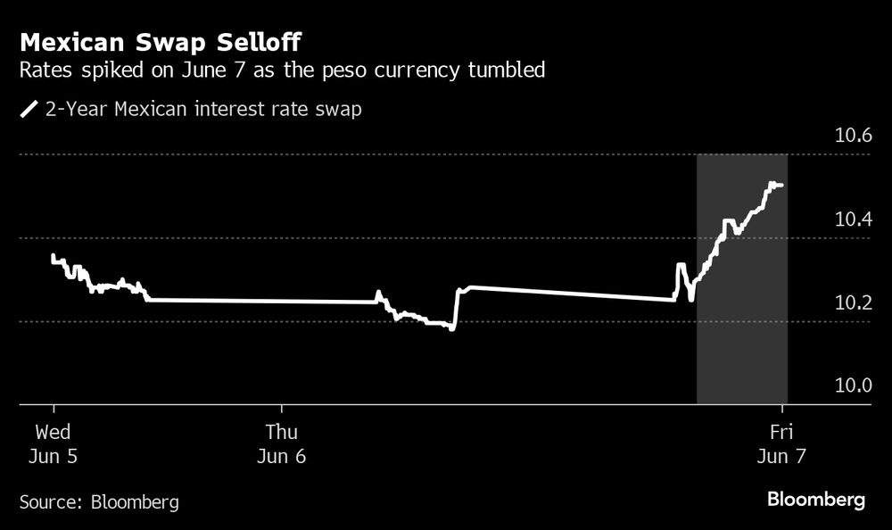 Bloomberg — A primera hora de la mañana del 7 de junio, los futuros de las tasas de interés se dispararon en México. Durante toda la semana, se habían mantenido estables a pesar de la caída del peso tras la aplastante victoria electoral del partido de izquierdas en el poder. Pero ahora, el desplome se extendía repentinamente al mercado de tasas.