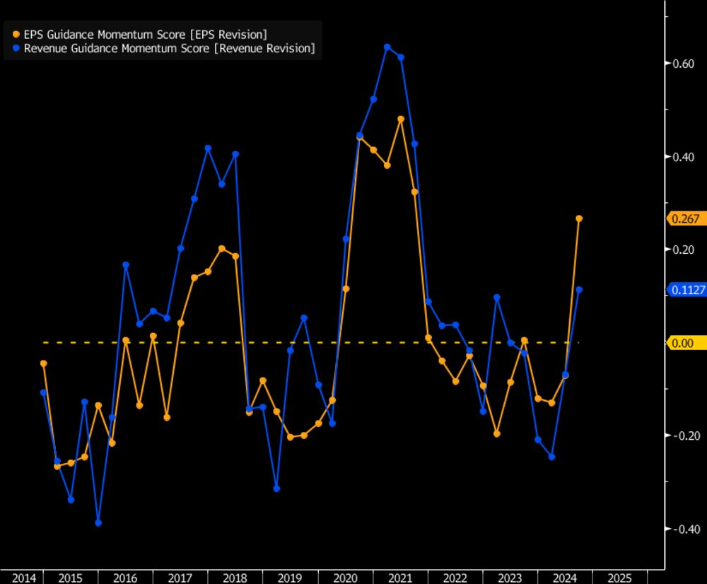 Los datos de Bank of America mostraron la misma tendencia. El estratega Subramanian señaló que las estimaciones medias de los analistas tanto para 2024 como para 2025 se mantienen. "Esto sugiere que los analistas se sienten relativamente cómodos con sus estimaciones", afirmó.