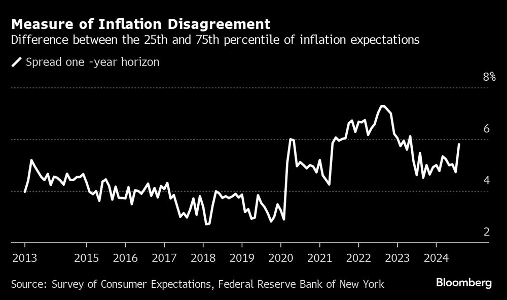 Pero la encuesta muestra una creciente incertidumbre en las expectativas de inflación de los consumidores. Una medida del desacuerdo entre los encuestados -la diferencia entre el percentil 25 y el 75- aumentó en todos los horizontes temporales, según el informe.
