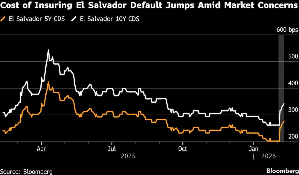 El foco de atención le está alcanzando ahora en los mercados financieros, donde los inversores han empujado los swaps de incumplimiento crediticio al nivel más alto en cinco meses, señalando un creciente malestar por la estrategia cripto-pesada del país. Los bonos en dólares fueron los que más cayeron en los mercados emergentes la semana pasada, antes de recortar esas pérdidas en medio de un amplio repunte de la deuda de los países en desarrollo.