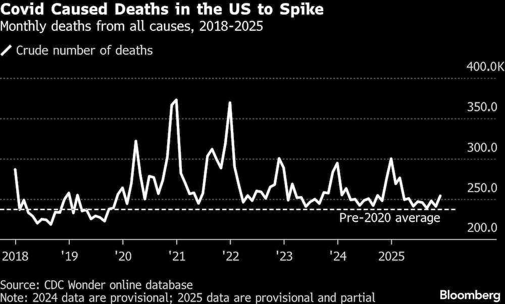 Bloomberg — La pandemia no sólo arrastró las muertes hacia delante en el tiempo. En la mayoría de las naciones ricas, el Covid-19 dejó un aumento duradero de la mortalidad que aún no ha remitido del todo, según un análisis de datos de 34 países.