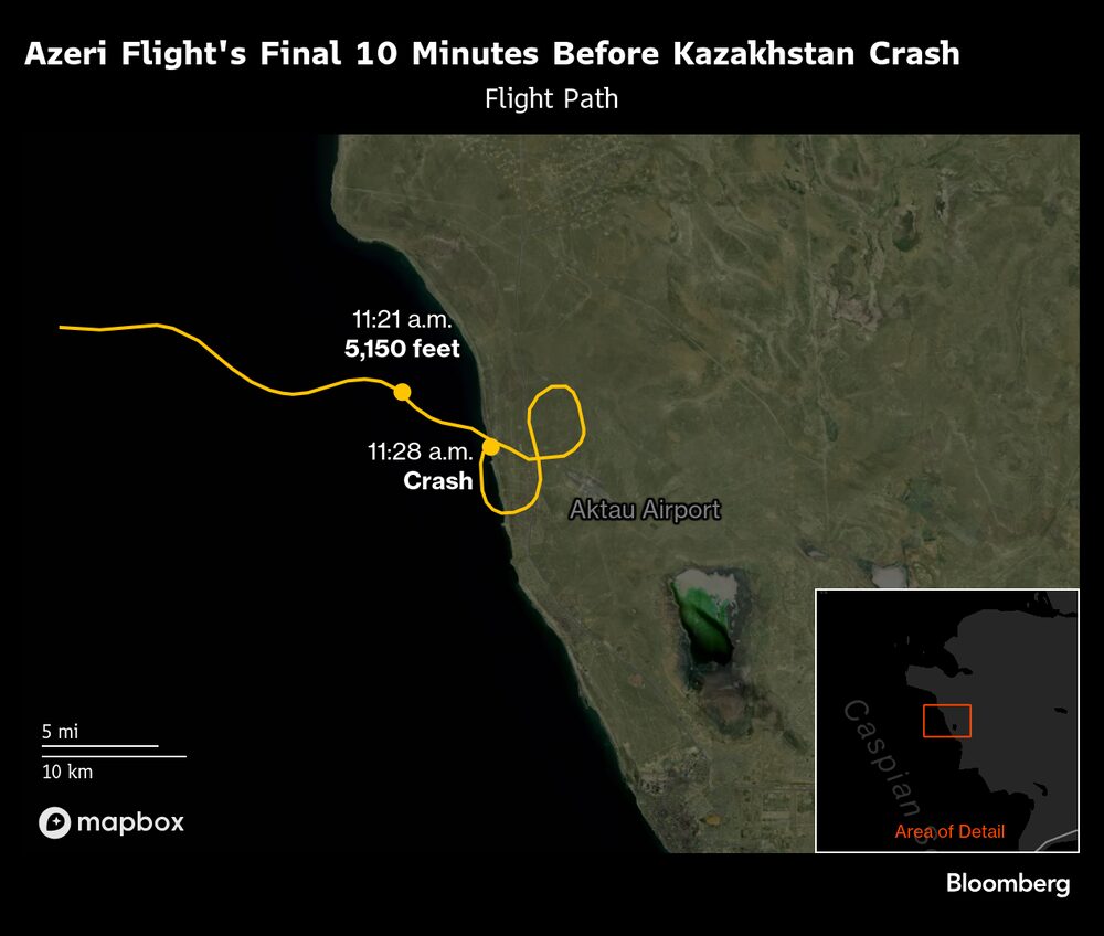 El Embraer SA 190, que se dirigía de Bakú a Grozni, se estrelló a unos 3 kilómetros (1,9 millas) de Aktau, Kazajstán, tras volar cientos de kilómetros sobre el mar Caspio en su estado averiado. Treinta y ocho personas murieron mientras que 29 sobrevivieron, algunas con heridas graves.