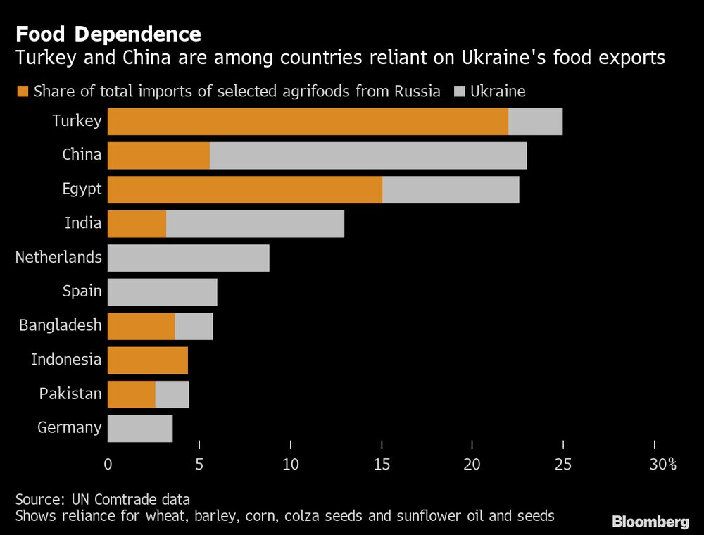 China e Turquia são os que mais dependem dos alimentos vindos da Ucrânia