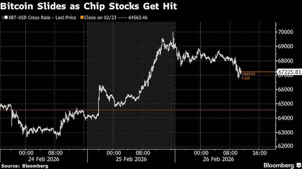 La mayor criptodivisa cayó hasta un 3,5% a US$66.511 en las operaciones de Nueva York. El miércoles, el token había subido hacia los US$70.000 por primera vez desde el 16 de febrero, aprovechando un repunte más amplio de los activos de riesgo.