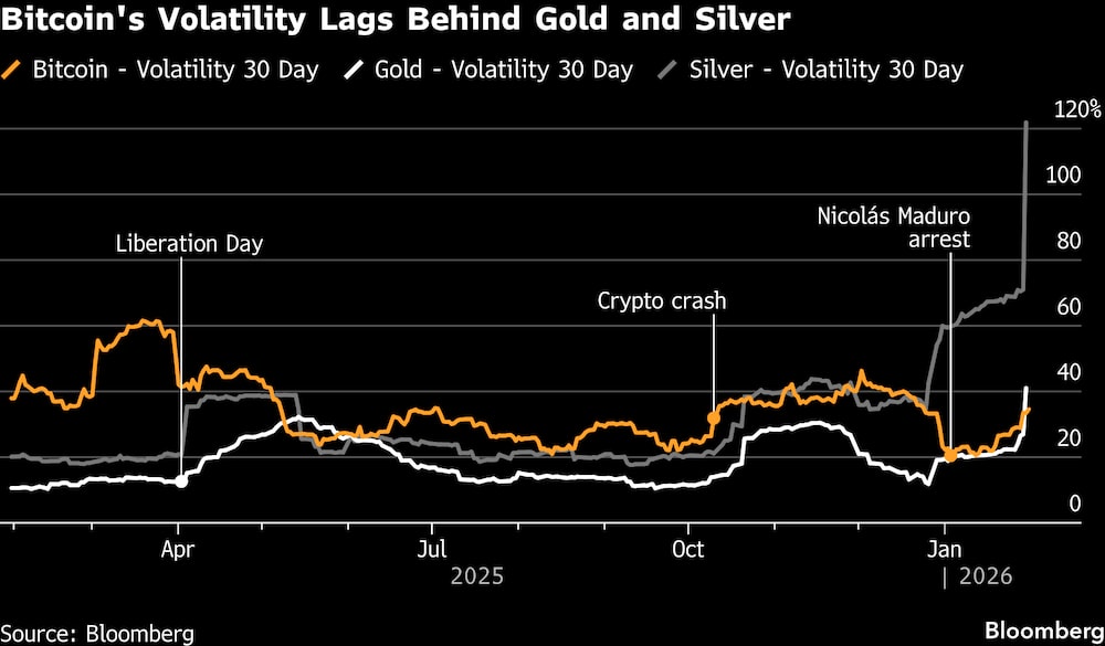 Bitcoin no ha respondido a la tensión geopolítica, la debilidad del dólar o los repuntes del riesgo. Incluso durante las violentas oscilaciones del oro y la plata en las últimas semanas, el cripto no vio ninguna rotación.