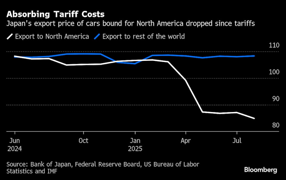 Los exportadores japoneses, en particular los fabricantes de automóviles, han absorbido hasta ahora gran parte de los costes arancelarios, lo que ha contribuido a proteger a los consumidores estadounidenses. Los precios de exportación de los turismos del país a Norteamérica han caído más de un 20%, según el informe del FMI.