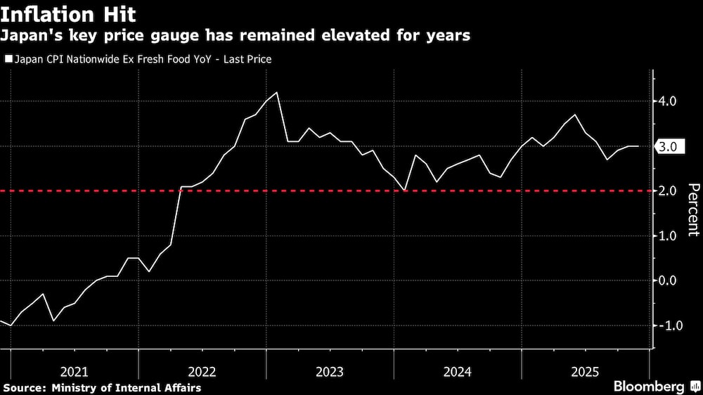 Takaichi se comprometió el lunes a recortar un impuesto del 8% sobre los alimentos y las bebidas no alcohólicas durante dos años, sin aclarar cómo lo pagará. Se espera que la medida cueste unos 5 billones de yenes (US$31.600 millones) al año, según el Ministerio de Finanzas.