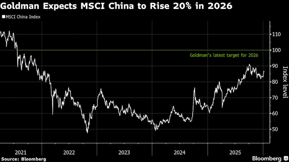 Bloomberg — Goldman Sachs Group Inc. (GS) prevé que los índices bursátiles chinos registren otro año de crecimiento, aunque a un ritmo más lento que en 2025, con los beneficios respaldados por la IA y las medidas políticas.