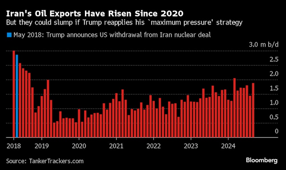 Un enfoque de línea dura por parte de Trump podría afectar significativamente al comercio de petróleo de Irán, ya que el presidente electo ha reducido los flujos procedentes de la República Islámica durante su primer mandato, que finalizó en 2021.