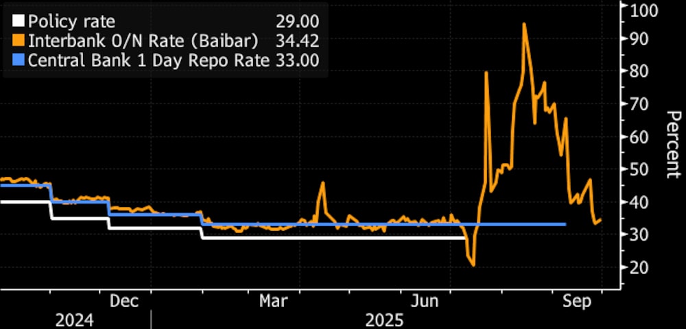 El banco central ha prometido disipar cualquier riesgo que ponga en peligro el proceso de desinflación, mientras que una vista clave contra la oposición tendrá lugar justo después de una reunión sobre tasas este mes. La mayoría de los analistas esperan que el banco continúe su ciclo de recortes, pero afirman que el ritmo podría ralentizarse. Los analistas de Goldman Sachs aumentaron por última vez su previsión de tasas a finales de año hasta el 37% desde el 35,5%.