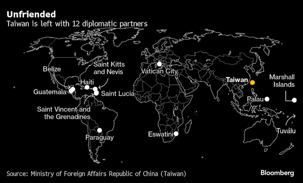 A Taiwán sólo le quedan 12 socios diplomáticos oficiales, ya que Pekín presiona a los países para que rompan lazos a cambio de relaciones con la segunda economía mundial. Pero incluso los intercambios informales con otras naciones están sometidos a un escrutinio cada vez mayor.
