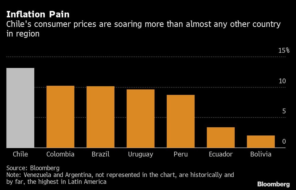 About this time last year, Chileans were feeling flush and the local economy was hotter than perhaps any other on Earth. What’s shocking now to many in a country that’s long prided itself on having the most stable economy in all of Latin America is the sudden nature of the turn toward stagflation. It’s happening far more quickly and violently here than across the rest of the globe.