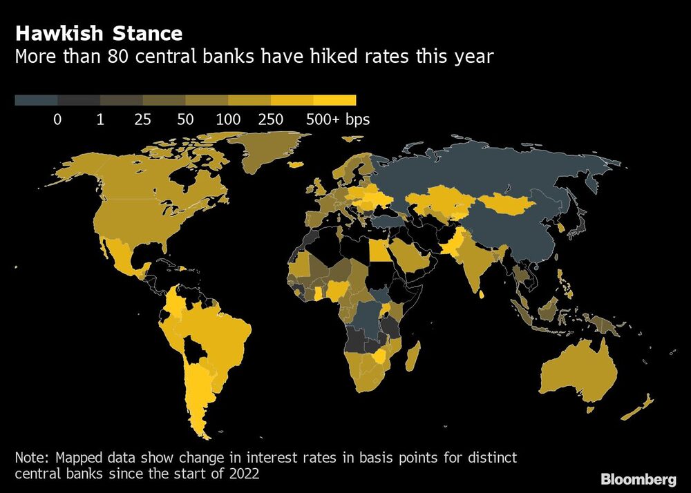 Central bankers in Hungary raised the benchmark interest rate by a full percentage point to 11.75%, the highest key rate in the European Union. Gambia also lifted its rate by 100 basis points. Guatemala opted for a 50-basis-point hike, while policy makers in the Dominican Republic went for 25.