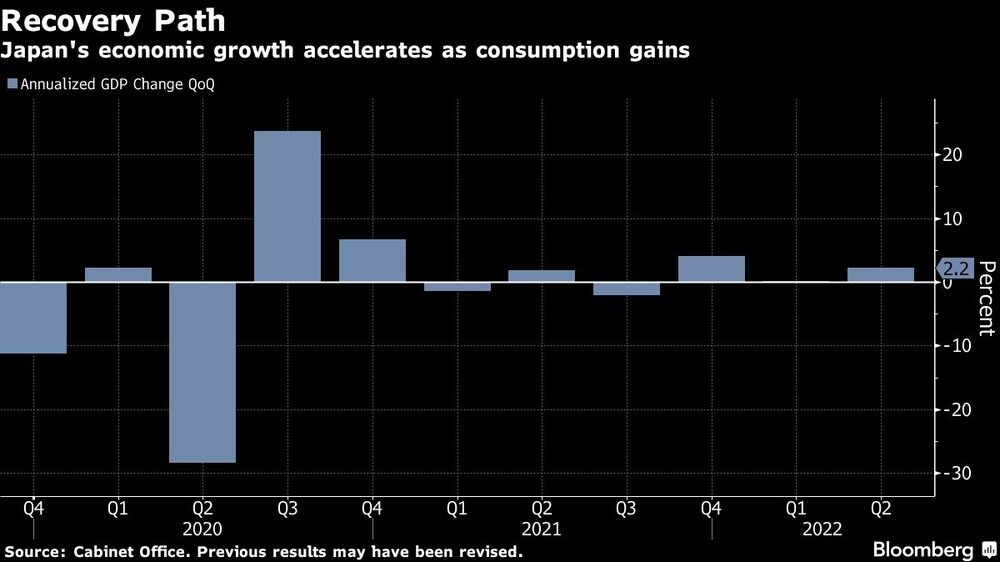 Japan recovered to its pre-pandemic size in the second quarter, as consumer spending picked up following the end of coronavirus curbs on businesses. Gross domestic product for the world’s third-largest economy grew at an annualized pace of 2.2% in the second quarter.