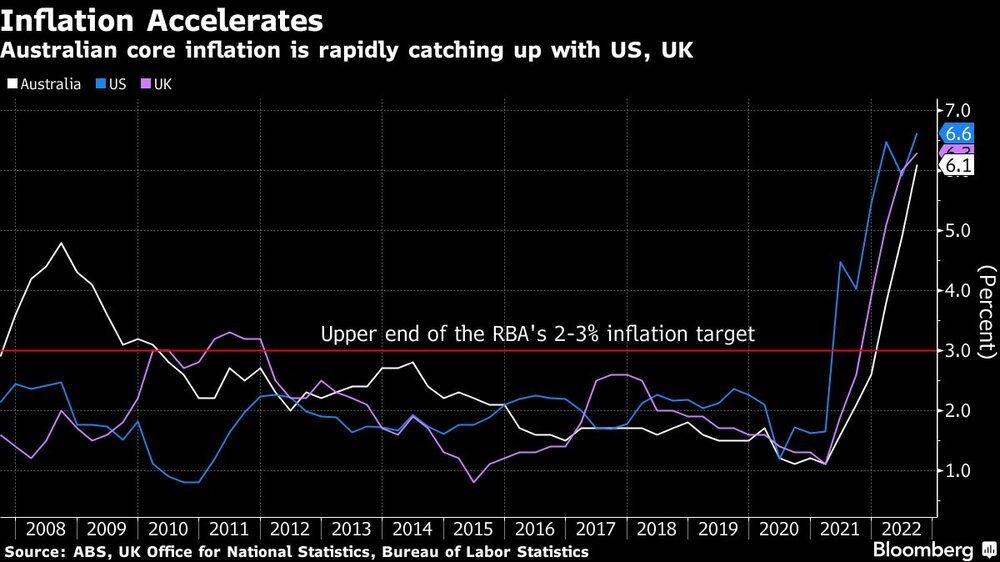 Australia’s annual headline inflation accelerated to a 32-year high in the third quarter, validating the Reserve Bank’s rapid policy tightening and prompting a jump in government bond yields. The consumer price index advanced 7.3%, the strongest reading since 1990 when the RBA hiked so aggressively it tipped the economy into recession.