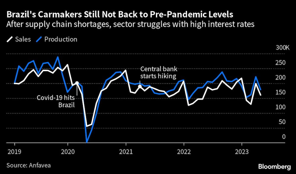The drop in demand that has resulted from high borrowing costs has led major brands, including General Motors Co, Hyundai and Mercedes-Benz AG, to temporarily halt production. In all, Anfavea says there have been 13 plant stoppages across the country this year.