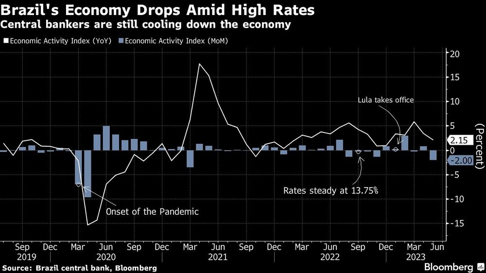 Bloomberg — Brazil’s economy shrank more than expected in May according to the central bank’s main gauge of activity, as President Luiz Inacio Lula da Silva’s government advances key reforms and investors bet on rate cuts.