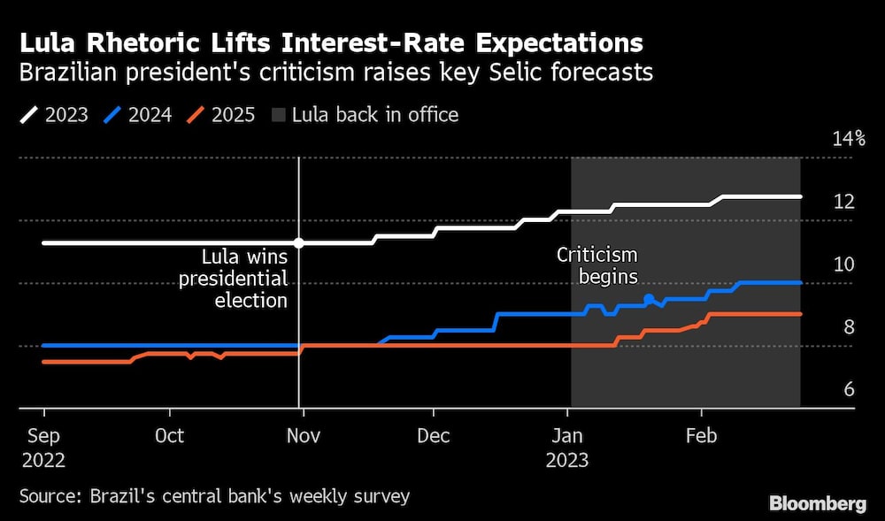 For its part, the central bank is warning it will keep the key interest rate at a six-year high of 13.75% to tamp down rising inflation expectations — and making the economy run cooler for longer. The stance has led Lula to unload his frustrations on the bank’s chief, Roberto Campos Neto, slamming him for monetary policy that he says is too restrictive.
