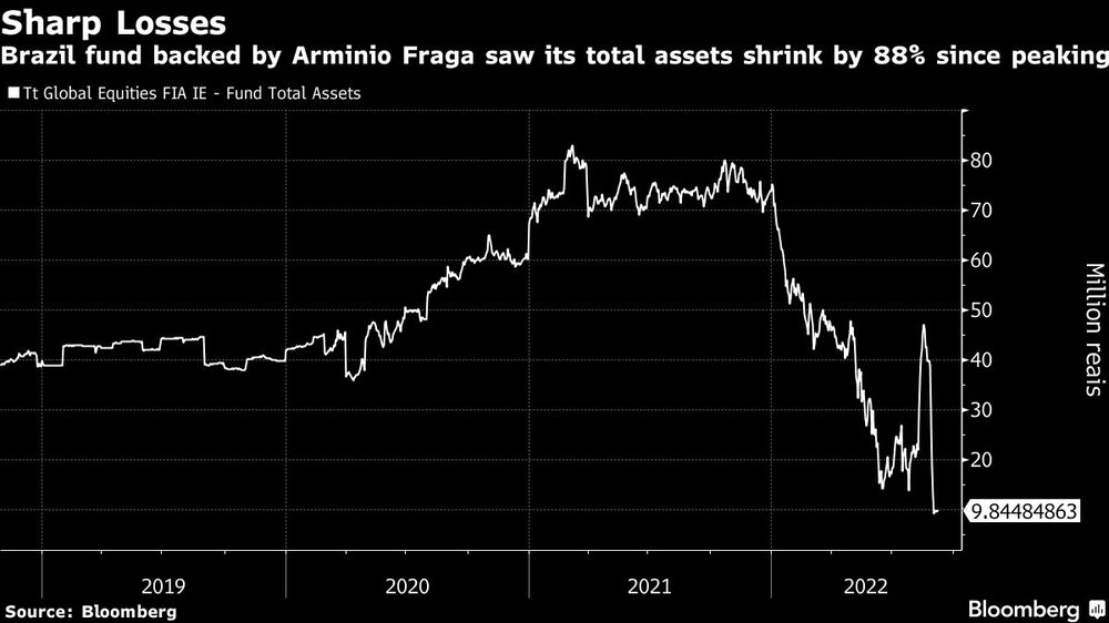 The Rio de Janeiro-based asset manager TT Investimentos Ltda, which has two of Fraga’s nephews as founding partners, saw its TT Global Equities FIA IE fund shed about 73 million reais ($14 million) in assets after peaking in March of last year. Losses accelerated recently after the fund failed to meet a margin call and was forced by its custodian to liquidate its Clarus position, according to Arthur Fraga Bahia.