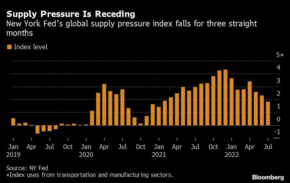 The easing of logistical logjams is also contributing to lower prices. The New York Fed’s index of global supply-chain pressure has dropped to the lowest level since early 2021. Short-term shipping rates are falling, transit times across oceans are shortening, and companies are even starting to moan about bloated inventories.