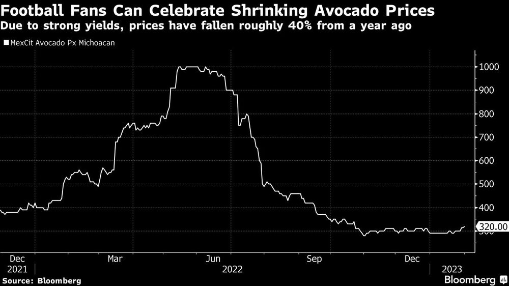 Bloomberg — Football fans can rejoice: Wings and guacamole are plentiful and affordable again.