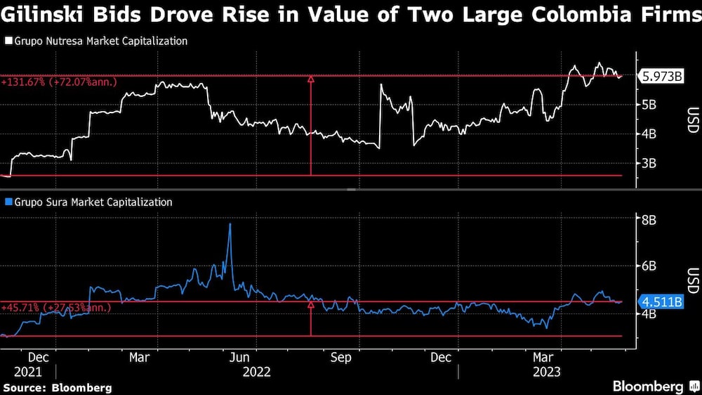 Gilinski, who is worth an estimated $4.4 billion, according to the Bloomberg Billionaires Index, unveiled his plans back in Nov. 2021 to buy a majority stake in Nutresa, Colombia’s largest food maker. Considered an outsider to Medellin’s business elite, Gilinski splits his time between homes in London, Miami and Colombia.
