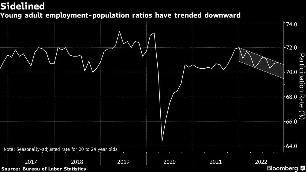 Bloomberg — US labor markets are starting to erode for groups such as young adults who are typically most vulnerable to an economic downturn, according to new research by the Federal Reserve Bank of St. Louis.
