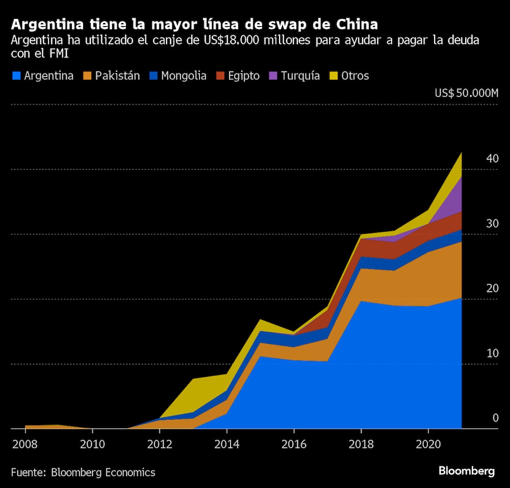 Todo ello sin mencionar la línea de swap de divisas equivalente a US$18.000 millones, la mayor fuente de reservas extranjeras del Banco Central. Se ha convertido en la mayor línea de swap de yuanes del mundo, en un momento en que China las ha estado utilizando en varios países para ampliar su influencia mundial. A cambio, China se asegura suministros de alimentos, minerales críticos como el litio y un nuevo mercado para sus industrias pesadas.