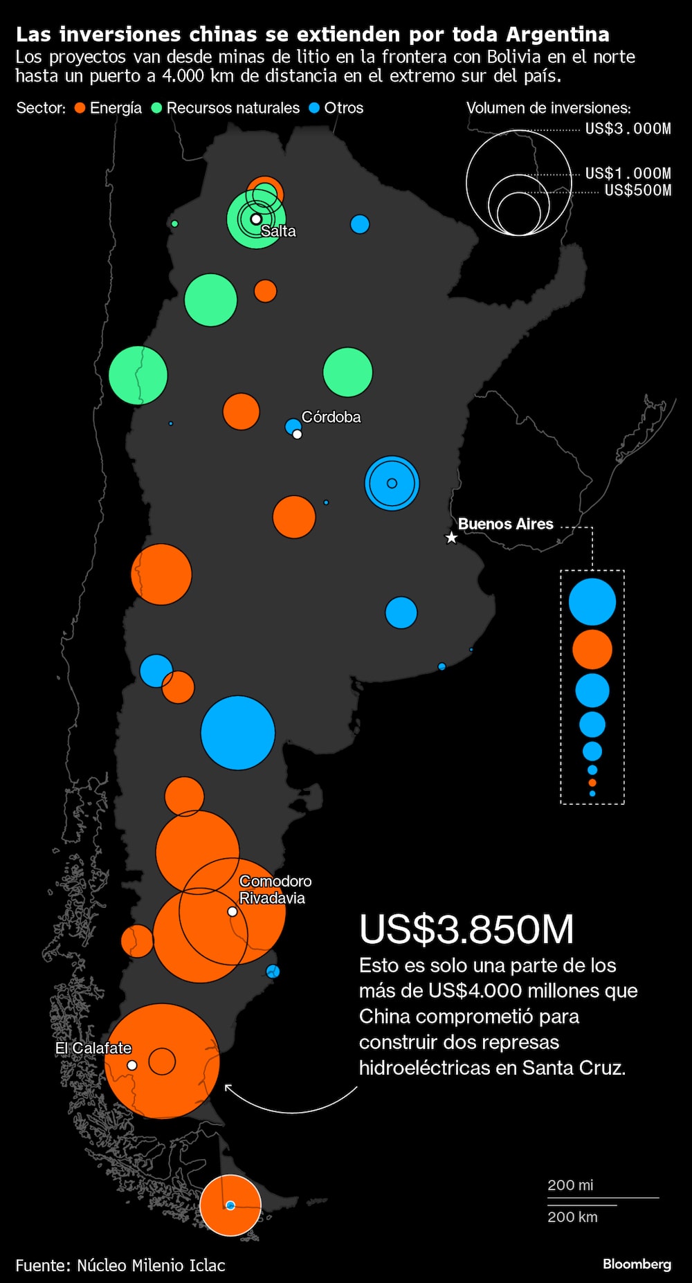 China es ahora el segundo comprador de las exportaciones de Argentina, sólo por detrás de su vecino Brasil, y su principal fuente de importaciones, según datos de Bloomberg Economics. China es el principal cliente de Argentina de soja sin procesar para alimentar su enorme cabaña porcina y de carne de vacuno. También es uno de los principales en la fiebre argentina del litio, que no ha pasado desapercibida en EE.UU., invirtiendo en proyectos para producir el metal de las baterías que alimentarán su flota de autobuses eléctricos.