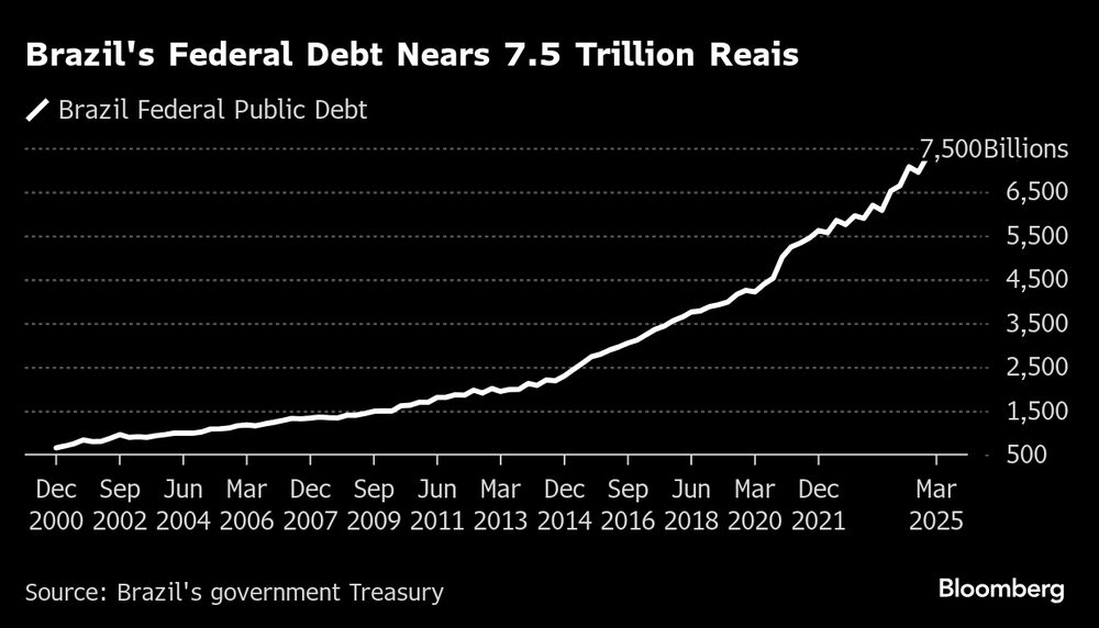 Los mercados financieros desconfían de los objetivos fiscales de Brasil a medida que se ralentiza el crecimiento económico local, lo que aumenta las perspectivas de que Lula gaste más para sacar jugo a la actividad en los meses previos a las elecciones presidenciales de 2026. Bajo el mandato del presidente izquierdista, la administración registró déficits primarios en 2023 y 2024 y permitió que aumentara la deuda como porcentaje del PIB. De cara al futuro, los aranceles comerciales estadounidenses están elevando la incertidumbre a nivel mundial, dejando a los inversores aún más nerviosos.