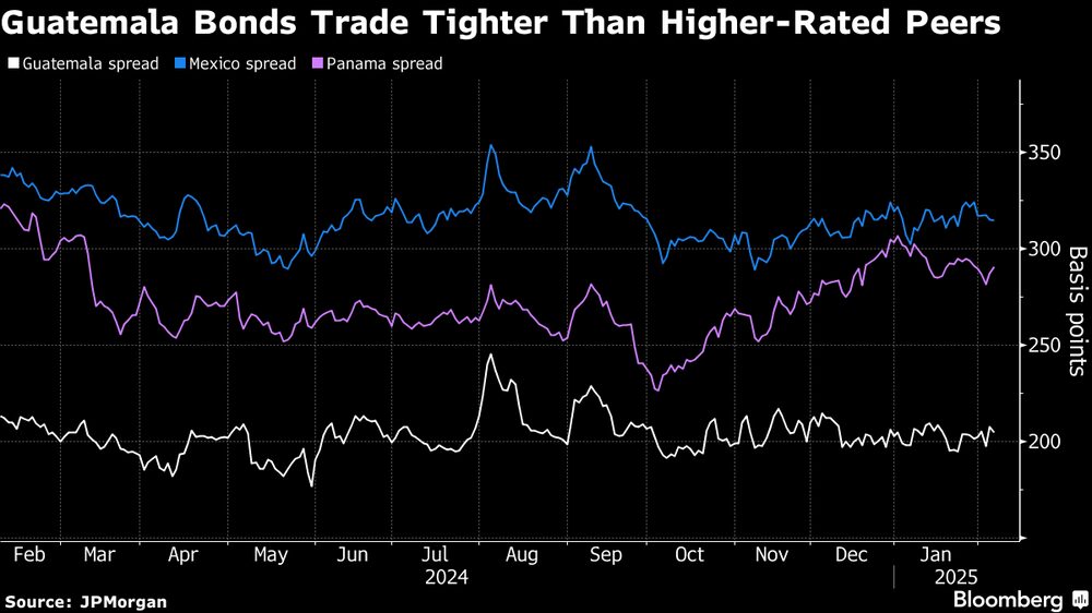Los bonos en dólares de Guatemala han ganado un 1,4% este año, por debajo de los rendimientos promedio del 2,2% de los bonos gubernamentales de los mercados emergentes, según un índice de bonos de Bloomberg.