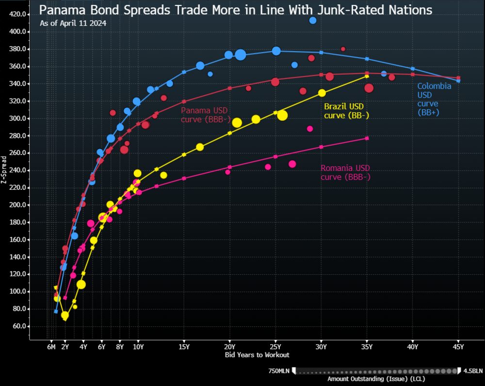 Los inversores exigen unos 35 puntos básicos adicionales para mantener a Panamá en comparación con la prima de riesgo media de los títulos soberanos con calificación BB, según datos de JPMorgan Chase & Co. En los últimos seis meses, Panamá ha rendido sólo un 2,3%, mucho menos que la media del 12% de la deuda en dólares de los mercados emergentes, según un índice de Bloomberg.